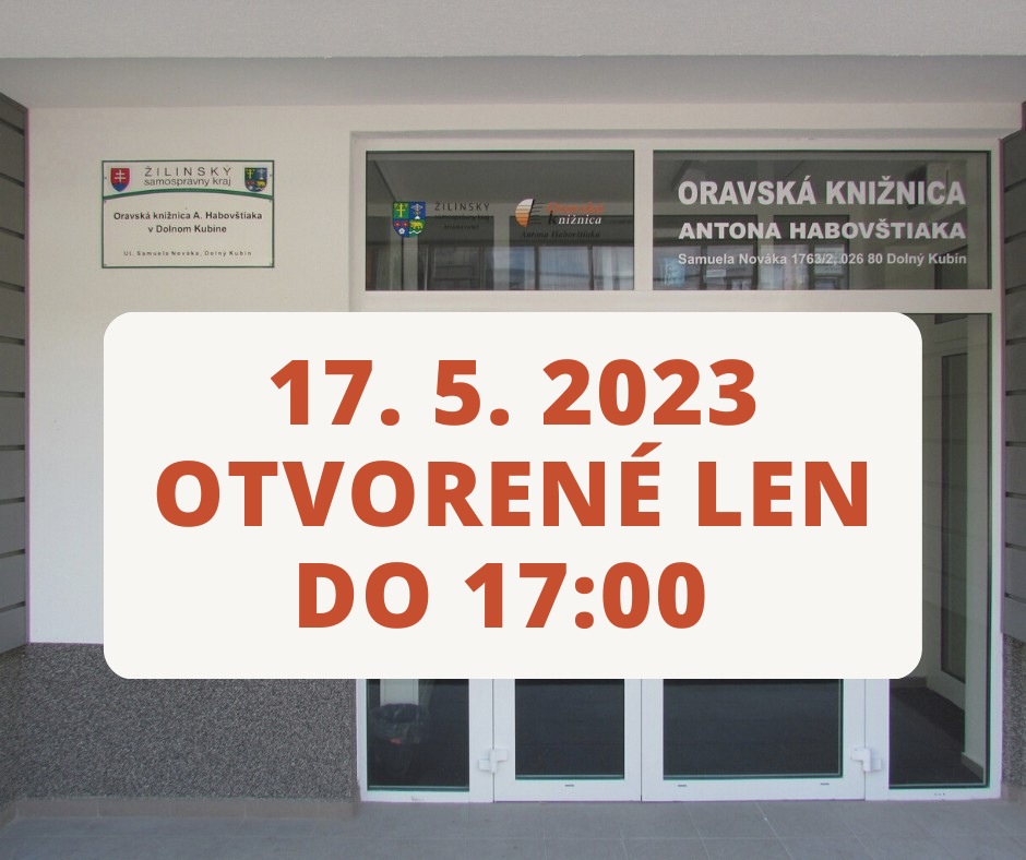 dňa 17. 5. 2023 bude knižnica z organizačných dôvodov otvorená len do 17.00 hod.